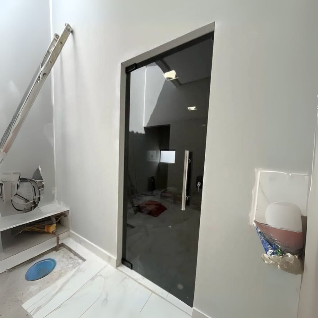 Realizamos instalação profissional de molas dorma de piso em portas de vidro blindex, garantindo o funcionamento suave, durabilidade e segurança para seu ambiente.